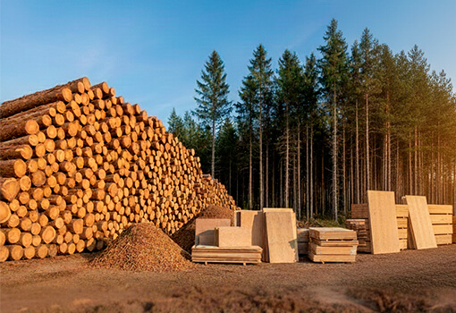 Лесопродукция: древесина в заготовленном виде, древесина на корню, пиломатериалы, щепа, фанера, плиты, лесохозяйственные услуги.